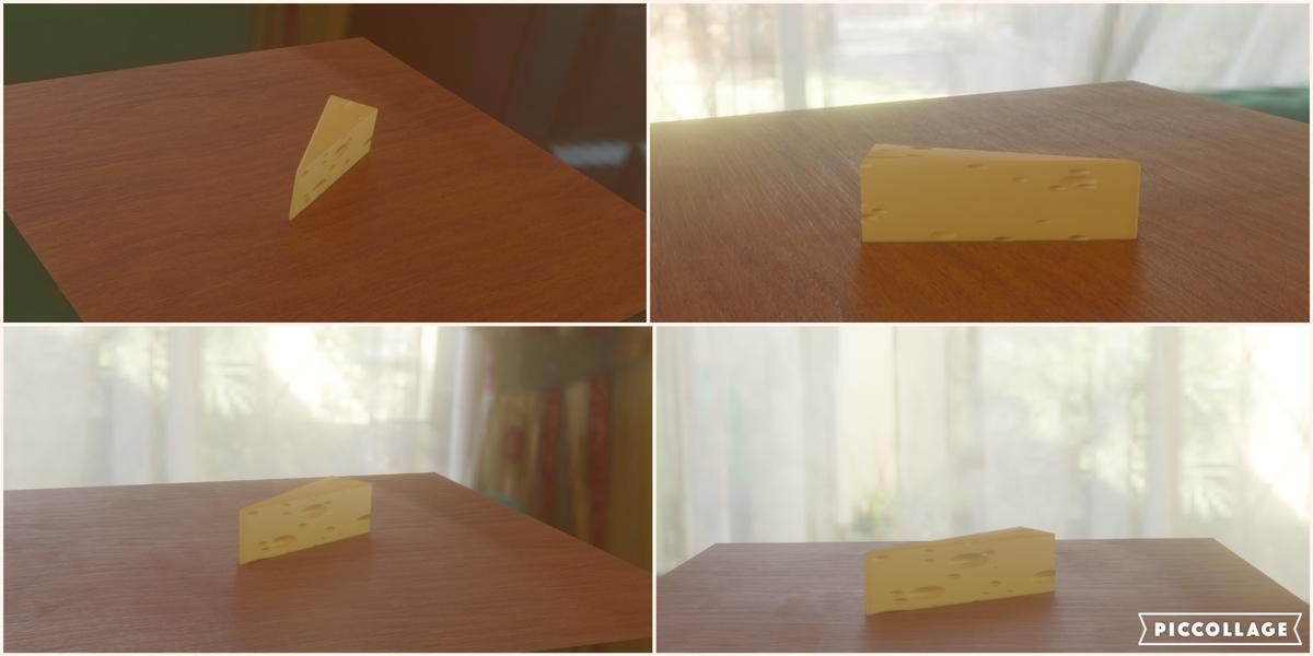 あと、作った後にせっかくなら写真に撮りたいと思い、あちらこちらカメラのサイズや角度を変えながら試行錯誤しながらとっていて、自分は椅子に座ったままBlenderの空間でカメラを行ったり来たりさせたりしていると、いつの間にか時間が過ぎていました、、、