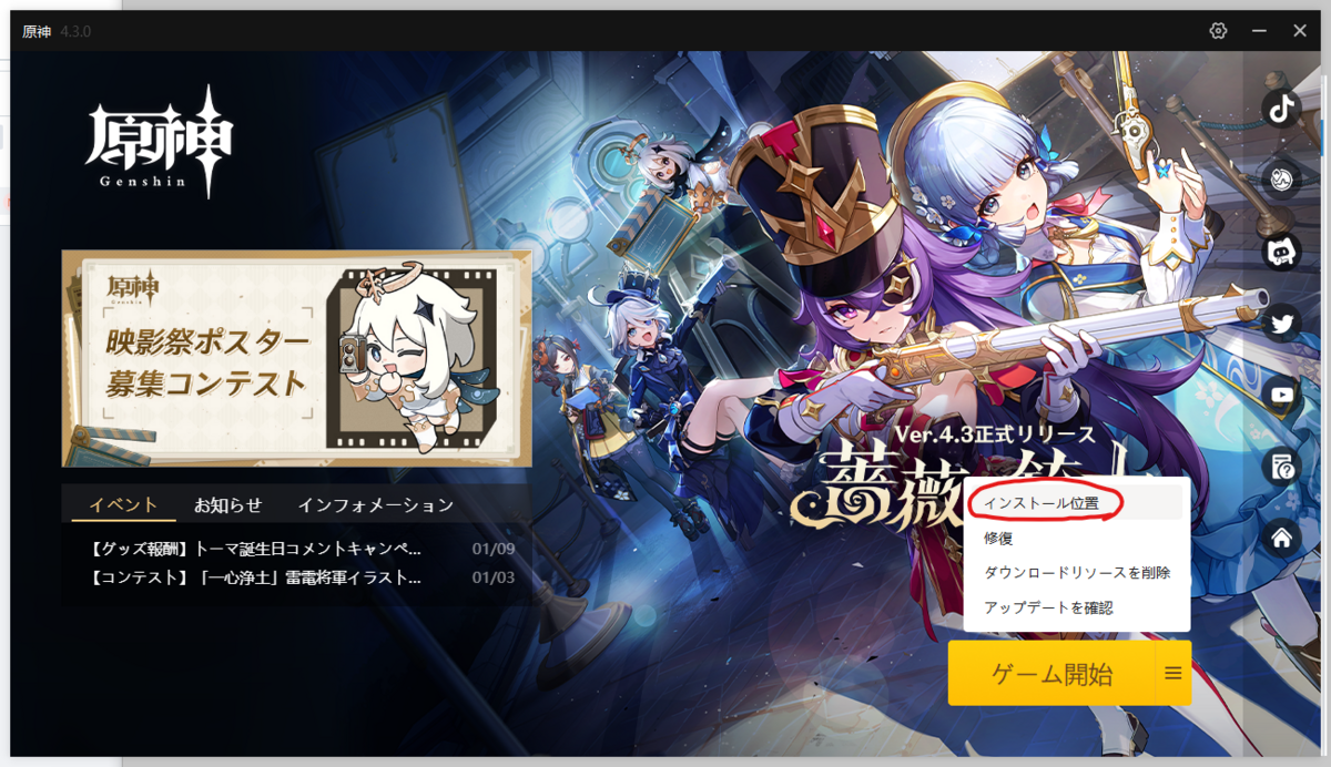 4.起動確認できたら、移動する前の"Genshin Impact"ファイルを削除